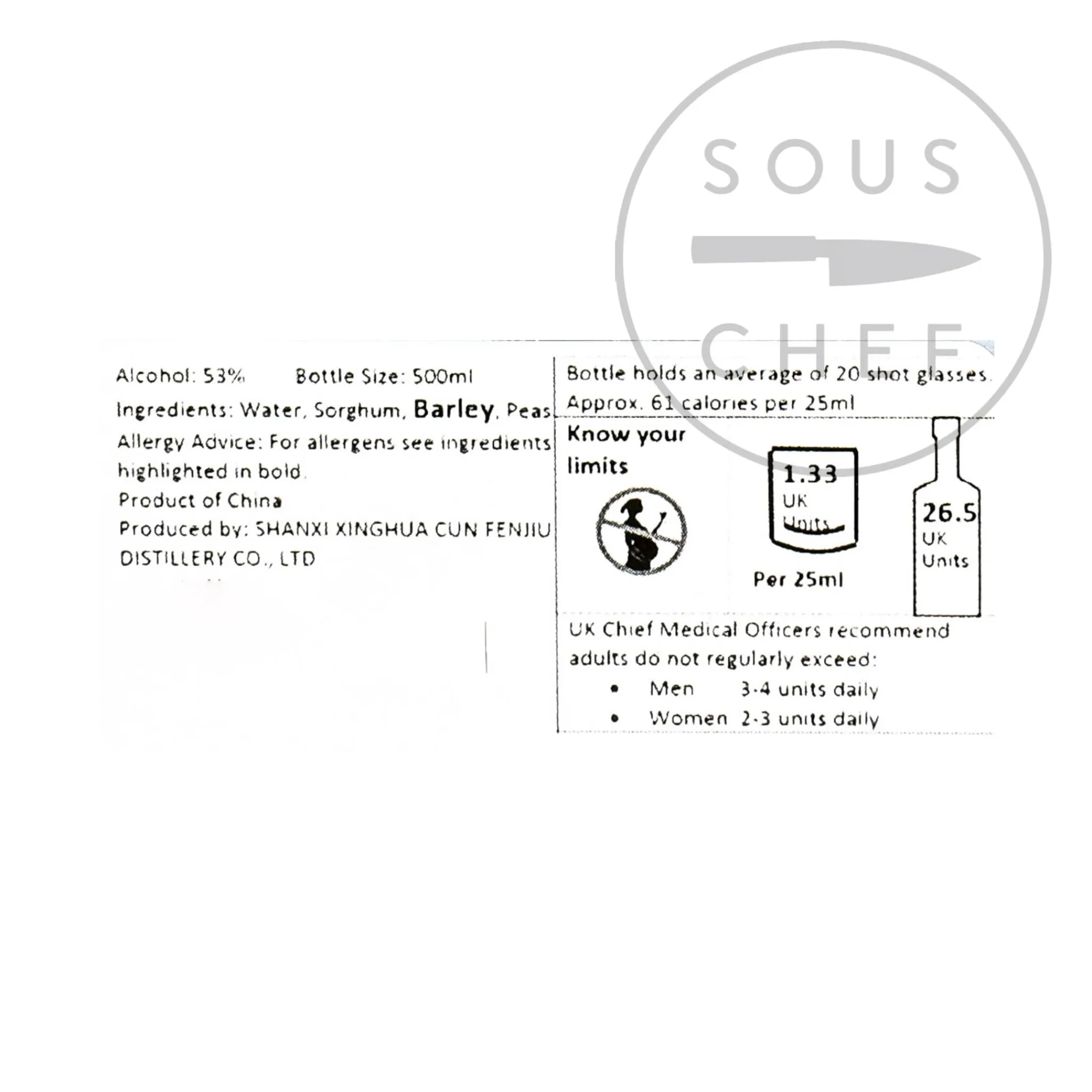 A lighter baijiu, the XingHuaCun Fen Chiew has a rich and balanced flavour. It is slightly sweetened from the addition of corn sugar, and carries notes of green apple and a hint of matcha. This slight bitterness blends well with the baijiu’s sweetness.